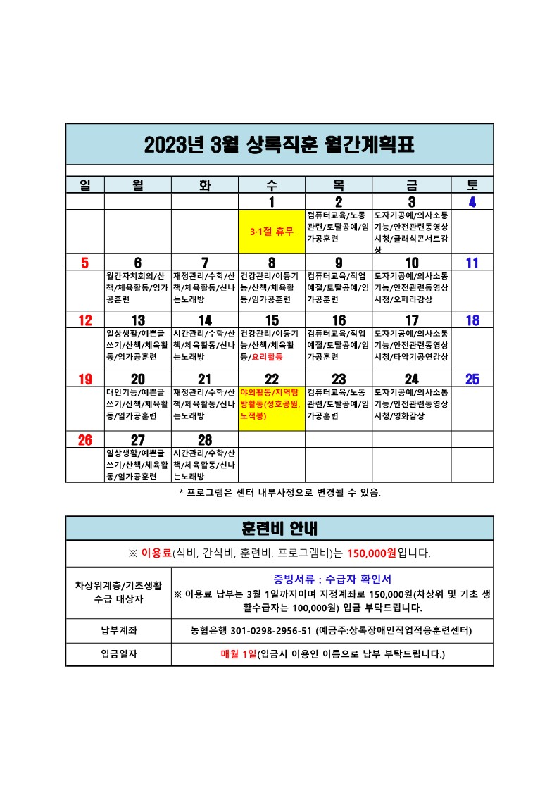 상록장애인직업적응훈련센터에서 공지하여 드립니다.