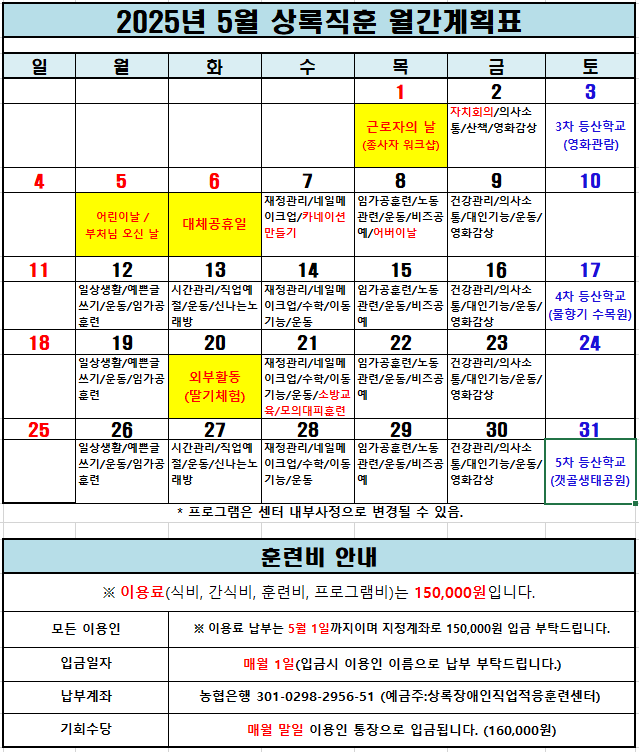 상록장애인직업적응훈련센터에서 공지하여 드립니다.