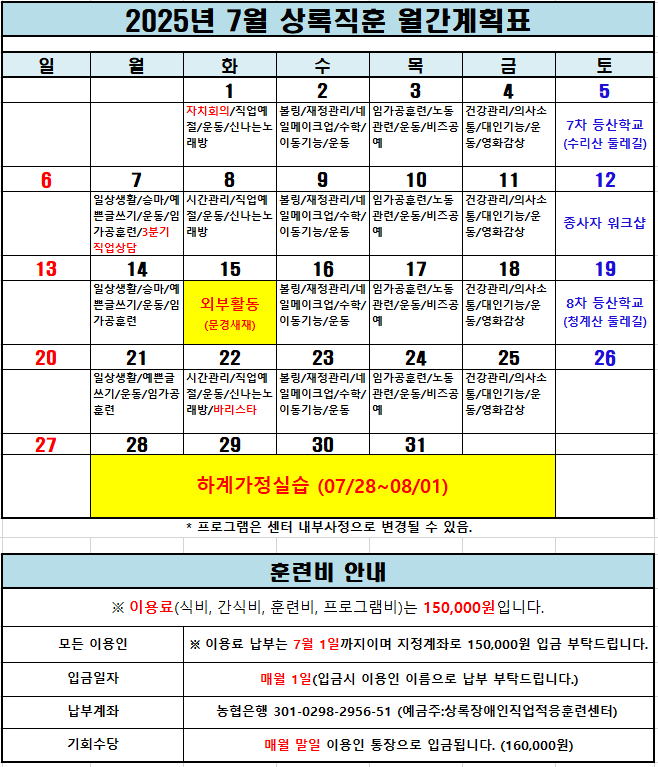 상록장애인직업적응훈련센터에서 공지하여 드립니다.