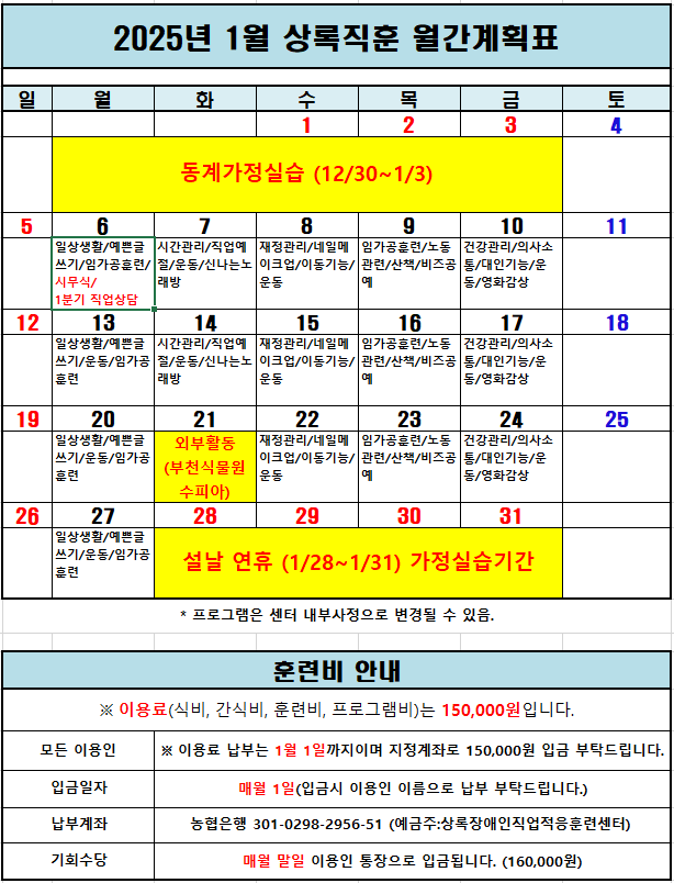 상록장애인직업적응훈련센터에서 공지하여 드립니다.