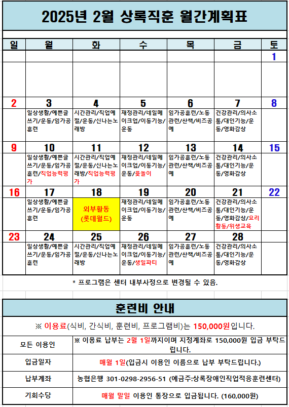상록장애인직업적응훈련센터에서 공지하여 드립니다.
